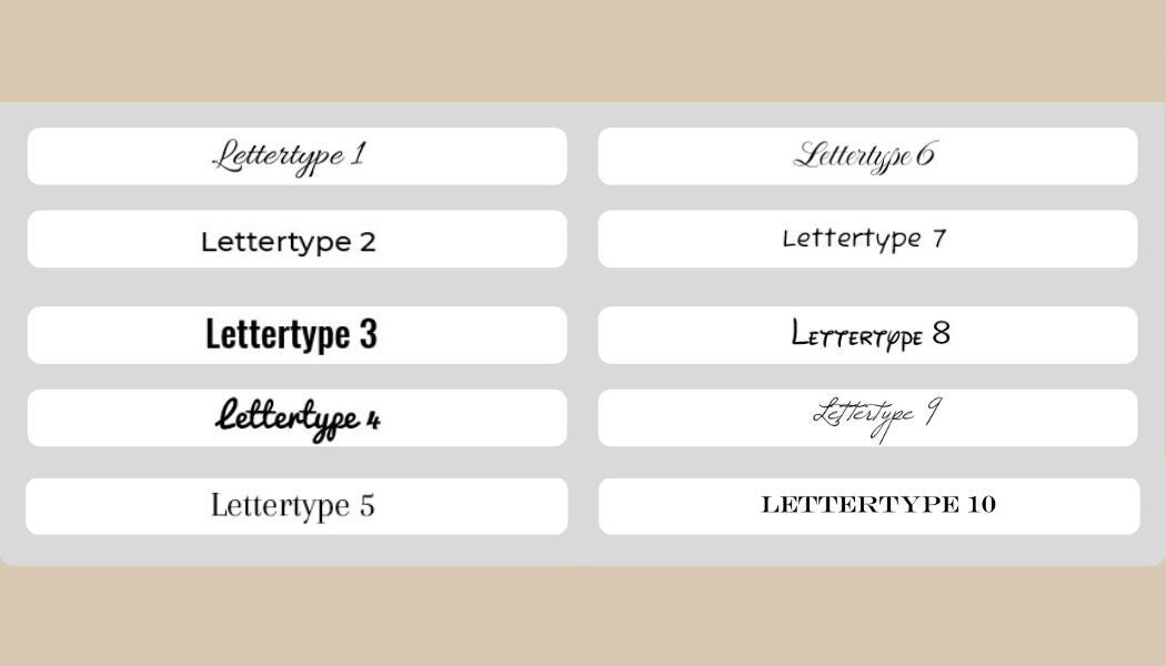 Kies daarnaast je eigen letterype, zoals de voorbeelden hiernaast/hierboven.